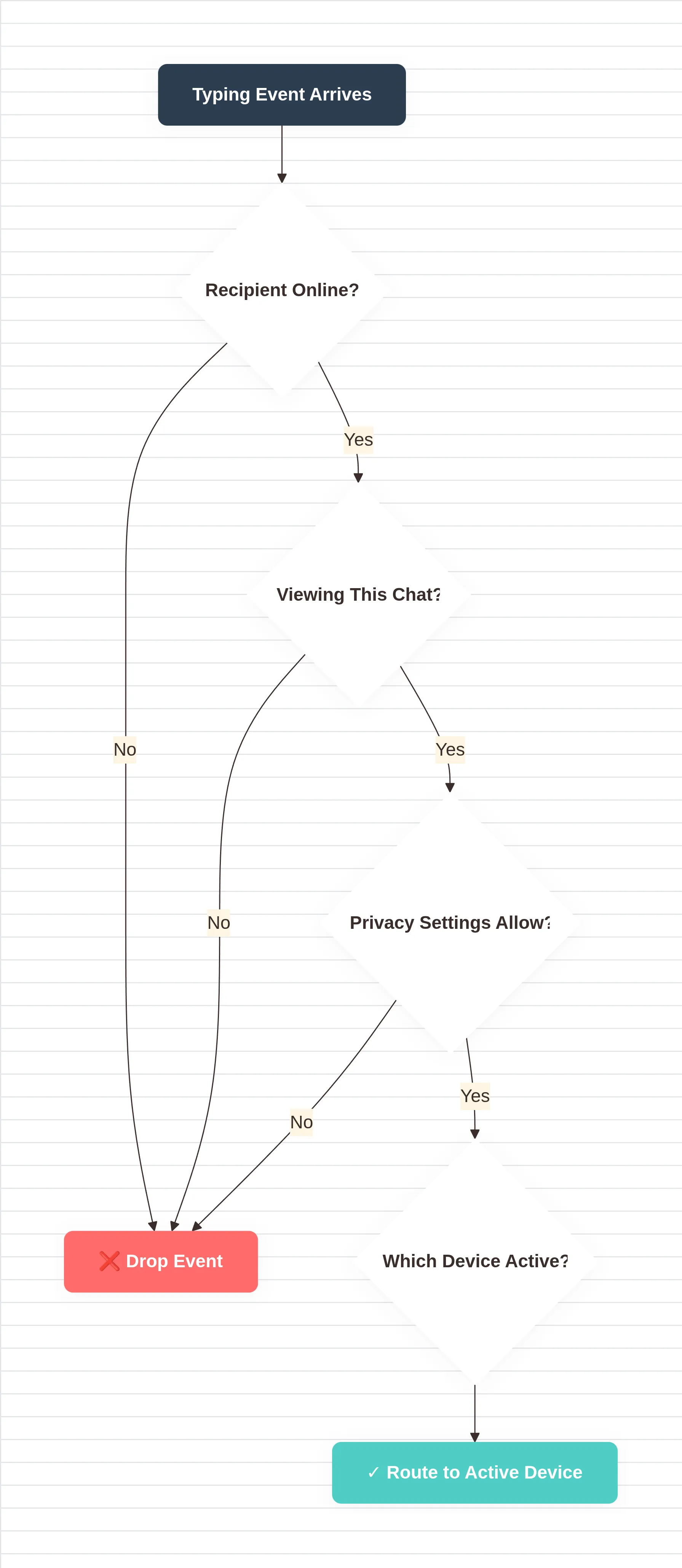 - Chat Context Verification: Is the recipient currently viewing this specific conversation? Typing indicators only route to active chat windows.