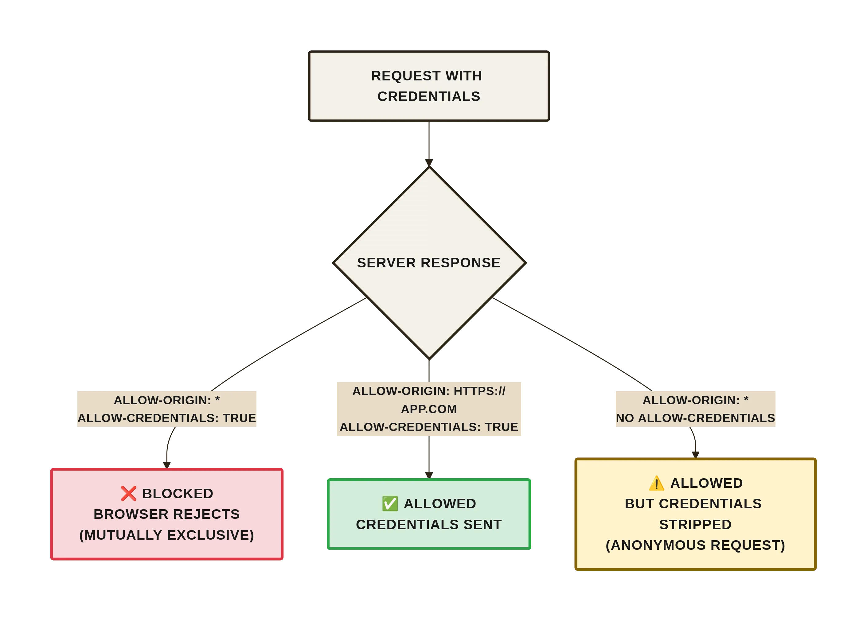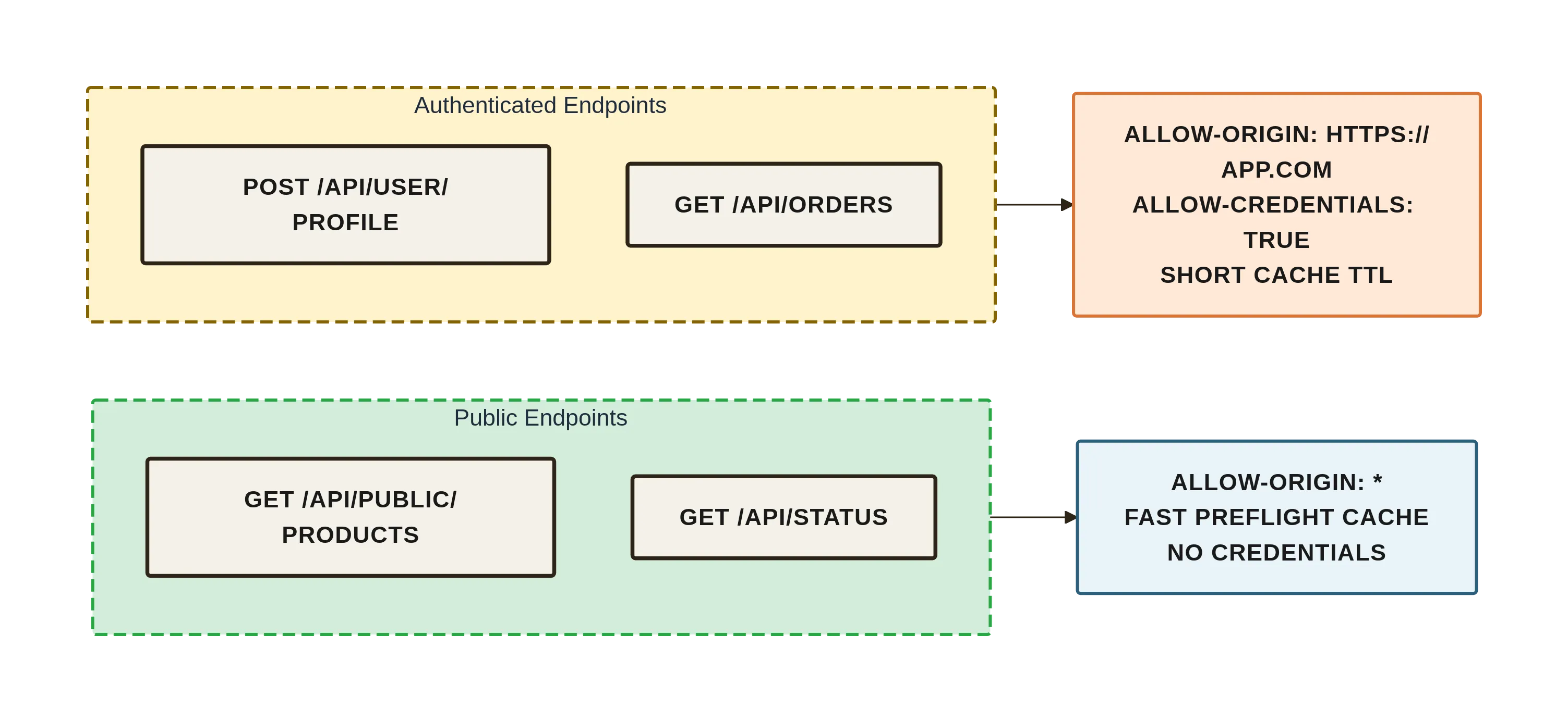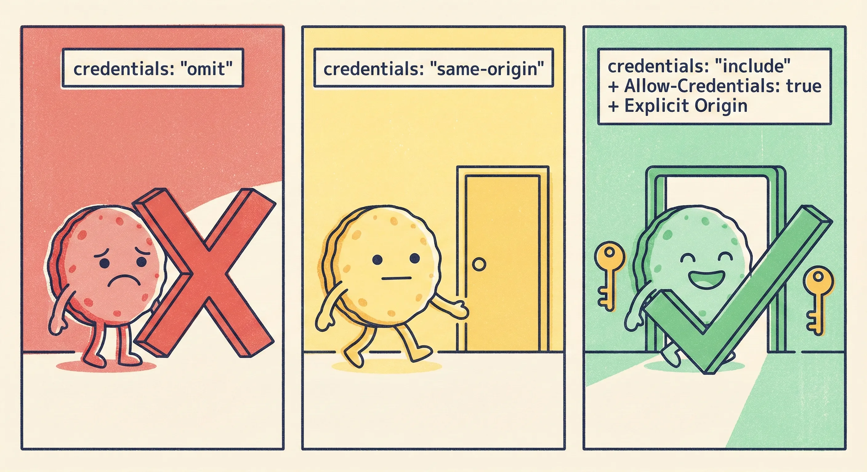 Miss either and the browser strips credentials, turning what you thought was an authenticated call into an anonymous one. Most “CORS works in dev, fails in prod” stories trace back to this mismatch.