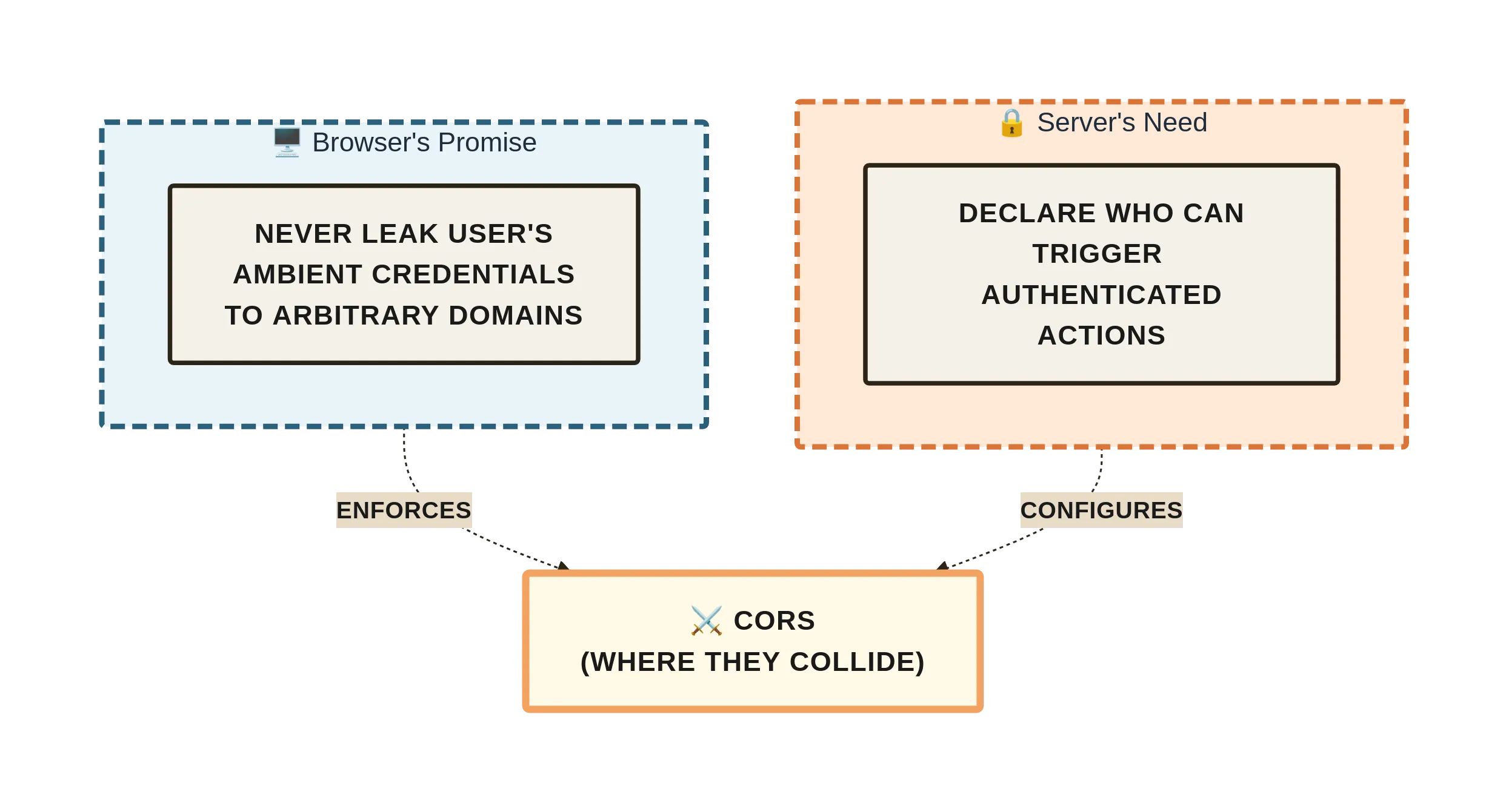 If you find yourself adding CORS headers to make an error go away, pause and decide whether you are relaxing the browser’s CSRF protection or merely informing it. The right header is the one that makes the protection true, not the one that makes the console quiet.