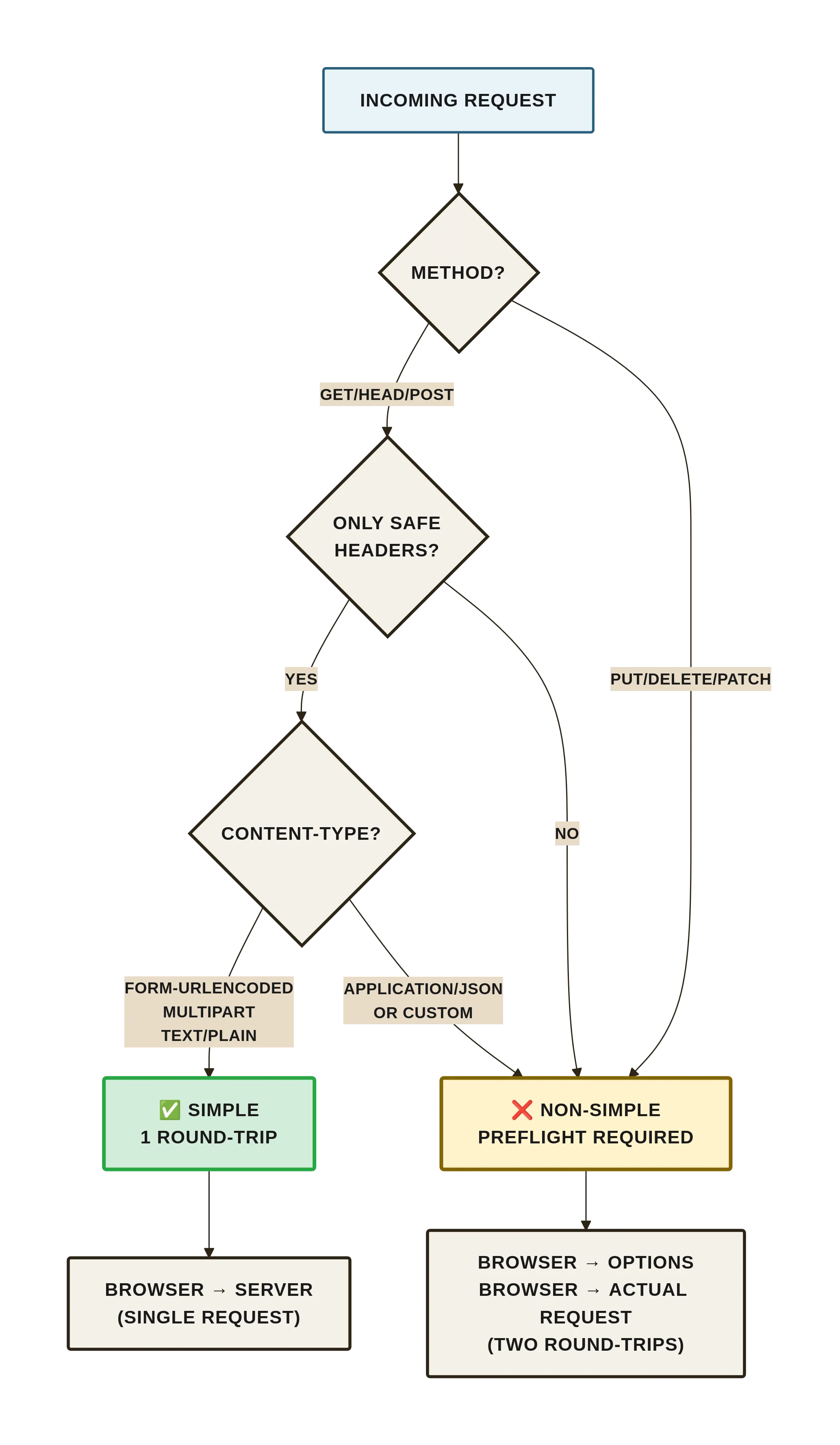 Everything else—application/json, authorization, custom headers—triggers a preflight.